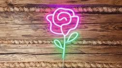 Obrys růže svítí jasně a rovnoměrně – růžový květ a zelený stonek vytvoří okamžitý vizuální akcent do každého pokoje.