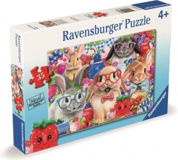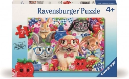 Objevte kouzelný svět zvířátek s puzzle RAVENSBURGER Zajíčci a lesní ovoce. Díky 35 pevným dílkům je skládačka skvělá pro děti, které si chtějí zlepšit jemnou motoriku, trpělivost a vizuální vnímání. Po složení vznikne obrázek o rozměru přibližně 26 × 18 cm.