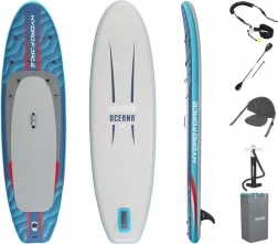 Model OCEANA 2v1 kombinuje komfort, stabilitu a variabilitu. Odolný materiál FortiFiber drop-stitch s tisíci vnitřních vláken dodává desce vysokou tuhost srovnatelnou s tvrdými SUP, ale při zachování nízké hmotnosti a snadného skladování. Protiskluzová diamantová podložka zajišťuje jistý postoj a ovladatelnost i pro začátečníky.