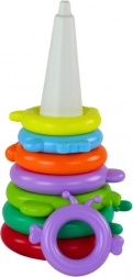 Postupné nasazování kroužků od největšího po nejmenší učí děti třídění podle velikosti, trénuje trpělivost a podporuje kreativní hru. Syté barvy a přitažlivý motiv žirafy udržují pozornost, zatímco malí objevitelé pilují šikovnost prstíků.