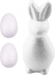 Sada obsahuje polystyrenového zajíce a dvě vejce (větší a menší) a čtyři intenzivní barvy spolu se štětcem. Tyto figurky jsou vyrobeny z lehkého a odolného polystyrenu, což zajišťuje snadnou dekoraci a odolnost proti poškození. Po pomalování je můžete využít jako velikonoční dekoraci na stůl, košík nebo do interiéru.