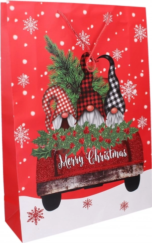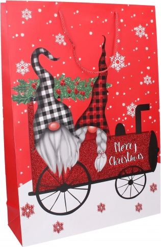 Prostorná vánoční dárková taška ve velikosti XL o rozměrech 40 × 56 × 13 cm usnadní rychlé a stylové zabalení i větších dárků. Vyberte si z 2 různých motivů s kouzlem Vánoc.