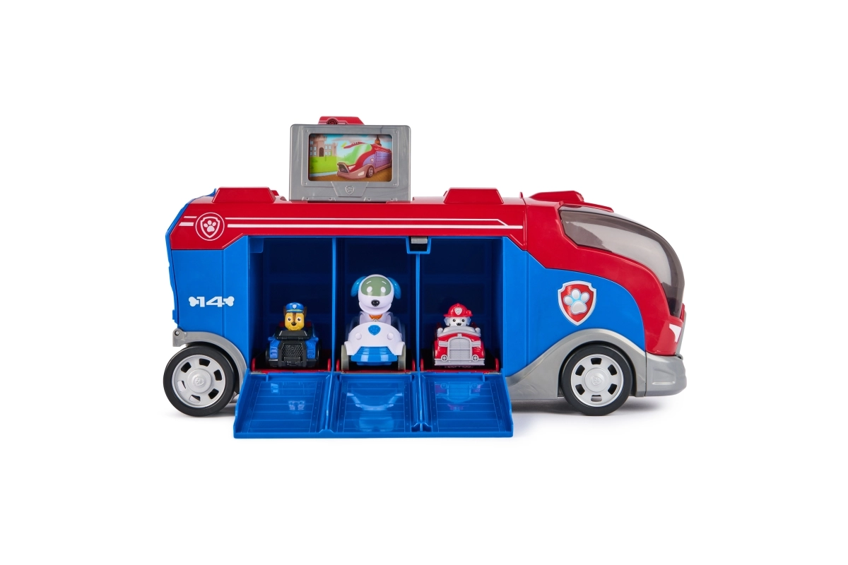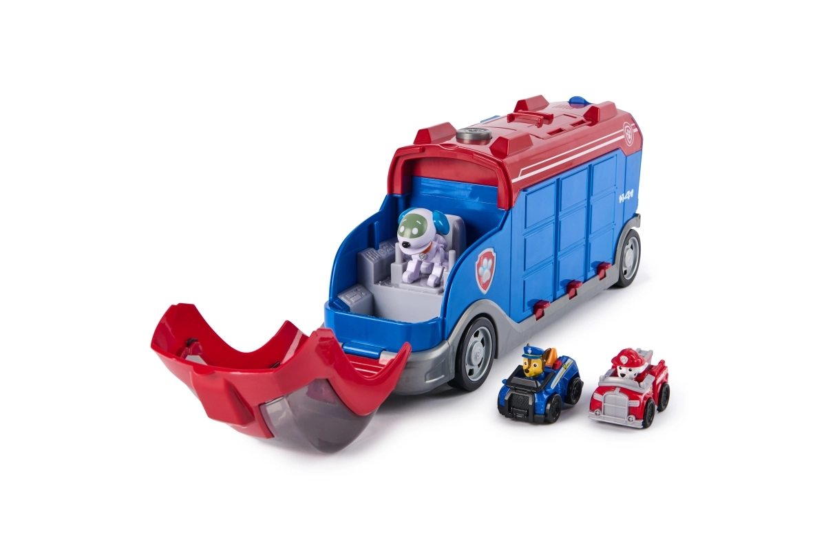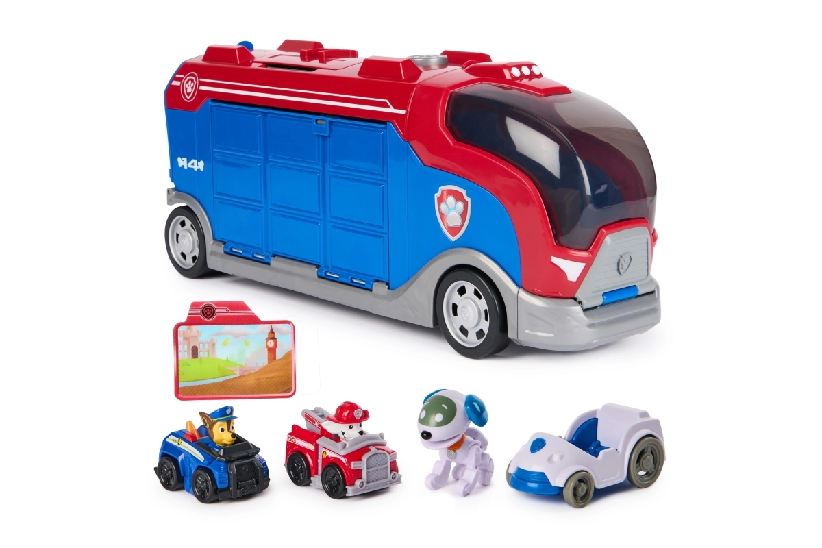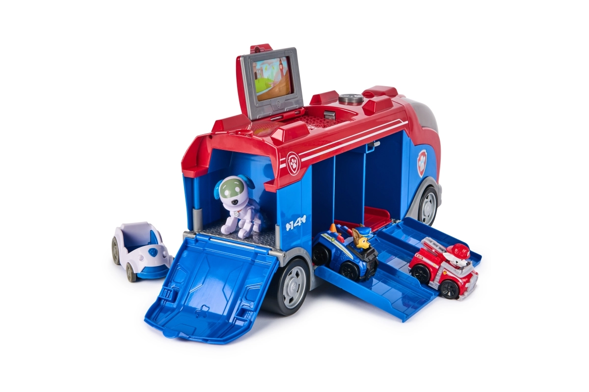 Mission Cruiser je mobilní velitelství, které děti okamžitě vtáhne do světa Tlapkové patroly. Otevíratelné boční panely odhalí parkovací místa pro mini vozidla a interaktivní monitor s kartou mise pomůže naplánovat další akci. Díky zvukům přímo ze seriálu je každá výprava ještě napínavější.