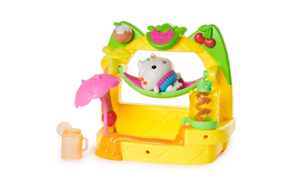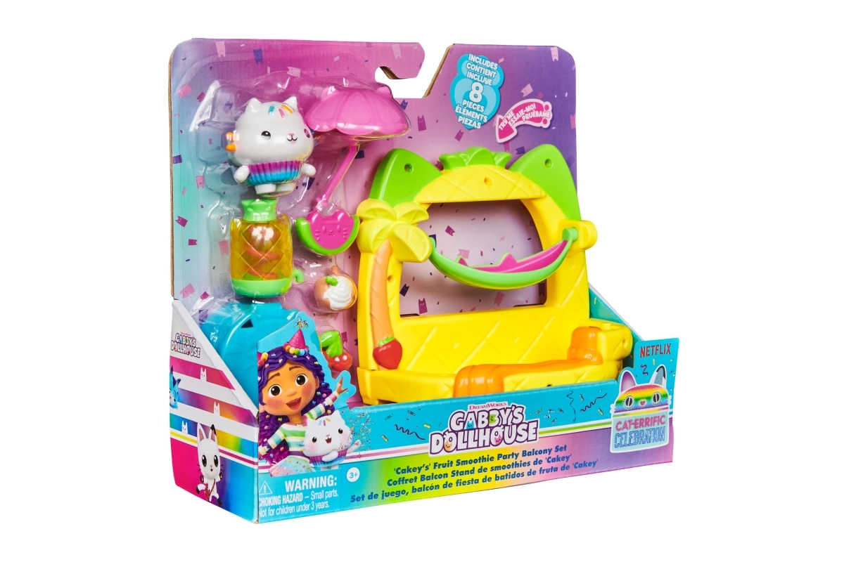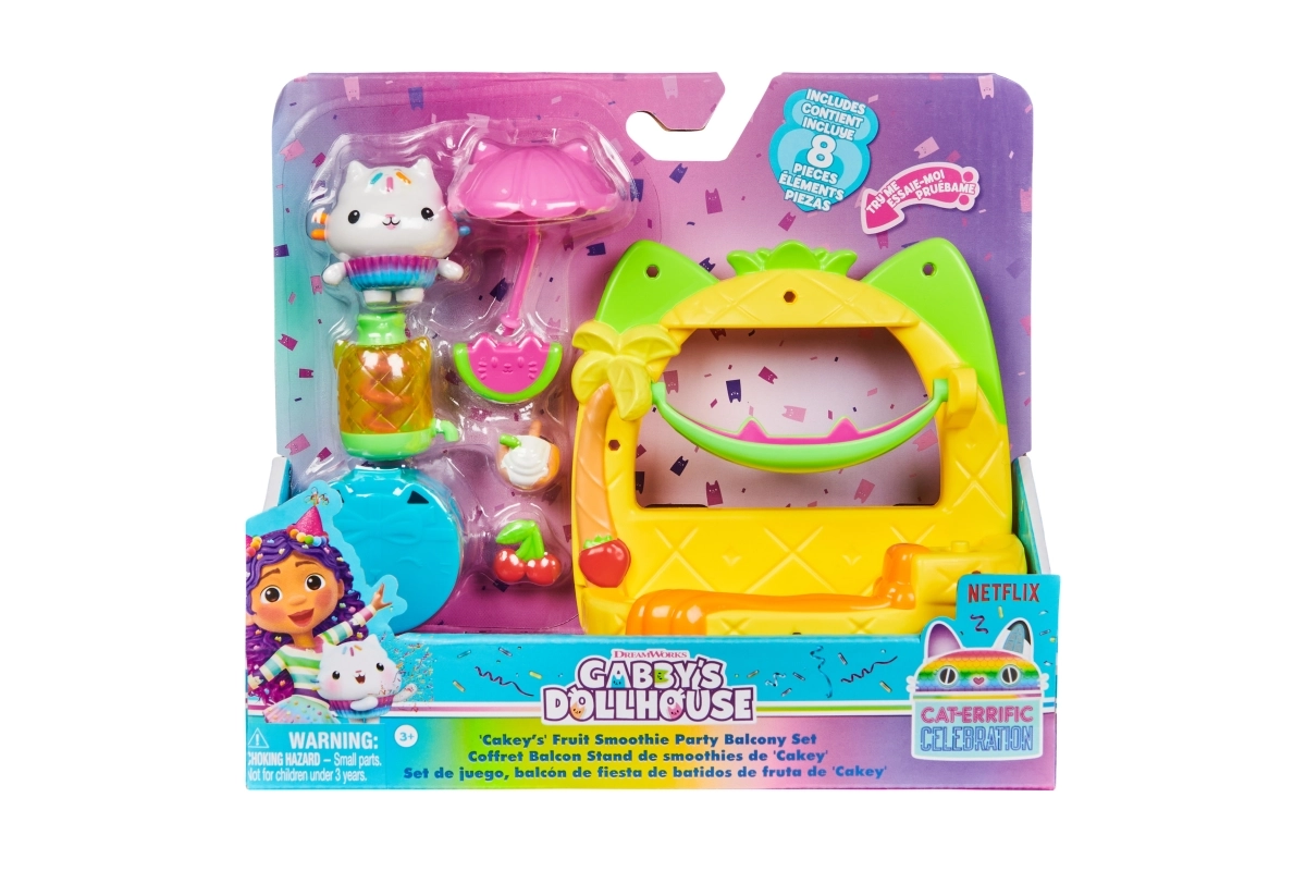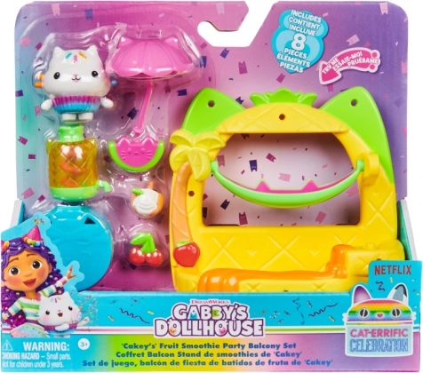 Rozšiřte svůj Kocí domek GABBY o stylový balkón s tématikou smoothie, kde Cakey míchá ovocné dobroty a odpočívá v hamace. Díky snadnému uchycení pod okna domku a bohaté sadě doplňků je hraní intuitivní a zábavné. Otevřete Kocí zásilku, objevte velkou nádobu jako překvapení a naskenujte QR kód pro odemčení speciální odměny v bezplatné aplikaci (iOS/Android).