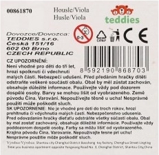 Dekorativní detaily, ladicí kolíčky a struny napodobují skutečné housle, aby děti bavilo zkoušet první melodie.