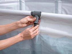 Zbiornik je vyroben z materiálu Tritech, který kombinuje PVC s polyesterovou sítí, což zaručuje vysokou odolnost.