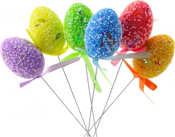 Díky pružnému drátku vajíčka snadno zapíchnete do zeminy či aranžovací hmoty a během chvilky vytvoříte harmonickou jarní dekoraci. Barevně sladěná mašlička dodá celku elegantní a jednotný dojem.
