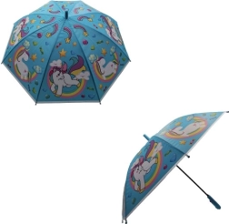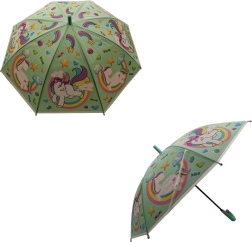 Roztomilý dětský deštník s motivem jednorožců ochrání vaše děti před deštěm a zároveň potěší hravým designem. Díky vystřelovacímu mechanismu se rychle otevře, pevná ocelová konstrukce zajistí stabilitu a plastová rukojeť pohodlné držení i pro drobné ruce.