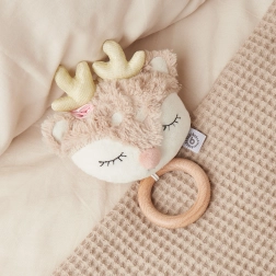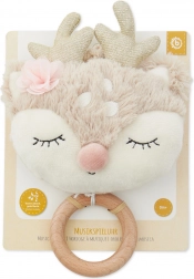 Koloušek Ella od Bieco je něžná závěsná hudební hračka navržená pro uklidnění a pohodové usínání. Po zatažení za elegantní dřevěný kroužek se rozezní klasická Brahmsova ukolébavka, která navodí pocit bezpečí a pohody.