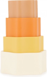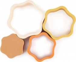 Tato 4dílná stohovací sada ve tvaru květiny je vyrobena ze 100% potravinářského silikonu, který je měkký na dotek, bezpečný pro děti a zároveň velmi odolný. Stohování a třídění jednotlivých dílků rozvíjí koordinaci oko–ruka, jemnou motoriku a logické myšlení.