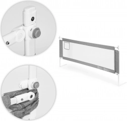 Bezpečná zábrana na postel ECOTOYS umožňuje pohodlné a klidné společné spaní s dítětem. Prodyšná síťovina zajišťuje volné proudění vzduchu a vizuální kontakt, ocelové prvky dodávají stabilitu a dlouhou životnost. Nastavitelná výška perfektně sedne k různým výškám matrací a typům postelí.