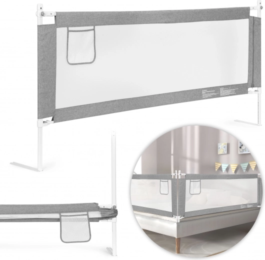 Praktická postelová zábrana ECOTOYS o šířce 180 cm zajistí bezpečí při společném spaní s dětmi. Nabízí univerzální montáž, nastavitelnou výšku pro různé matrace, pevnou ocelovou konstrukci a prodyšnou síťovinu pro lepší dohled. Díky sklopnému hornímu madlu je přístup do postele snadný a praktická kapsa udrží drobnosti po ruce.