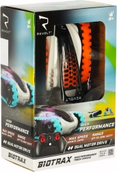 REVOLT BIOTRAX je mini terénní pásový model, který si poradí s různými povrchy – od koberce po trávník. Robustní plastové tělo a gumové pásy zajišťují skvělou přilnavost a odolnost, zatímco LED efekty zvýrazní každý trik i noční jízdu.