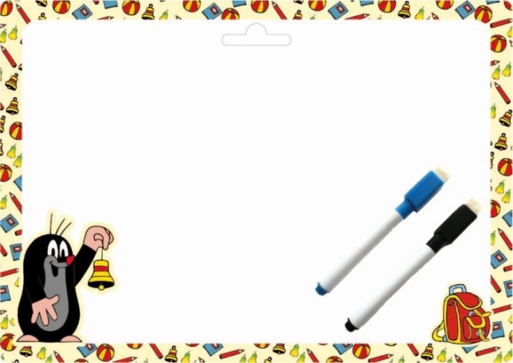 Oboustranná stíratelná tabulka A4 je ideální pro děti díky motivu s Krtkem. Obsahuje dva popisovače a má hladký, lesklý povrch, který umožňuje opakované psaní a kreslení.
