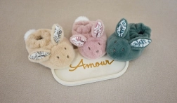 Dopřejte svému dítěti pocit klidu a bezpečí s touto sadou, která obsahuje nejen plyšového zajíčka s elegantní mašlí, ale i botičky s potiskem zaječích oušek a vyšitým obličejem.
