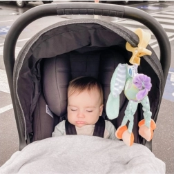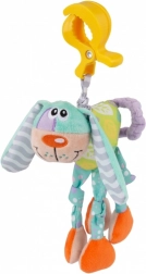 Zatažením za tělíčko se pejsek jemně rozvrní a při pohybu chrastí. Udrží pozornost miminka a pomáhá zklidnit během jízdy.