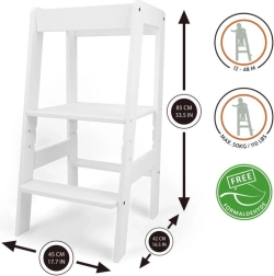 Objevte kouzlo této bílé učící věže, která byla konstruována z vysoce kvalitní překližky s maximální nosností až 50 kg. Díky možnosti nastavení výšky plošiny na 34, 40,5 či 47 cm se dokonale přizpůsobí růstu a potřebám dítěte.