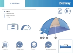Plážový stan Bestway Beach Ground 2 je navržen pro všechny, kteří si chtějí užít den na pláži bez intenzivního slunečního záření. Nabízí jednoduché řešení, které poskytuje stín během horkých letních dnů a vhodné úložné místo pro všechny plážové doplňky.