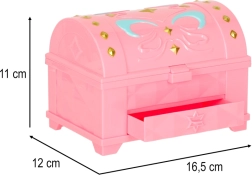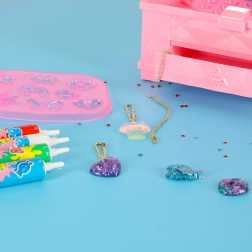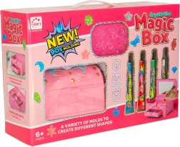 Magická krabička je úžasná kreativní sada, která umožňuje dětem vytvářet osobité šperky s pomocí barevného lepidla. Set obsahuje čtyři tubičky lepidla v barvách: červené, zelené, modré a bílé, a čtyři formičky různých tvarů. Doplňkové dekorativní prvky, jako glitry a malé krystaly, umožňují personalizaci šperků podle vlastní fantazie. K práci je k dispozici pilník a pinzeta.