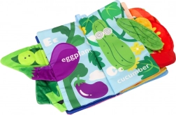 Tato měkká, bezpečná a odolná látková knížka je ideální první knížkou pro miminka. Nabízí kontrastní barvy, zvukové efekty (šustění a pískání) a vystouplé detaily zeleniny, které lákají k doteku a prozkoumávání. Díky popiskům v angličtině přirozeně podporuje rozvoj slovní zásoby a vnímání světa.