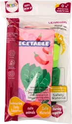 Každá strana zobrazuje zeleninu s anglickým názvem – ideální pro první seznamování s cizím jazykem a slovní zásobou.