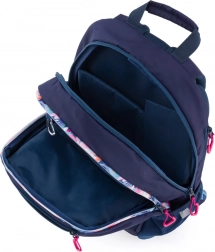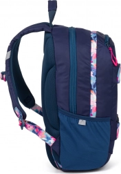 Studentský batoh OXY Sport Květy Modrý je perfektní volbou pro školu i volný čas. Ergonomicky tvarovaná záda a polstrované ramenní popruhy zajišťují pohodlné nošení i při větší zátěži. Batoh obsahuje dvě hlavní komory s pevnými zipy, přední kapsičku na drobnosti a vyztuženou kapsu na notebook. Skryté kapsy a karabina na klíče přidávají na praktičnosti.