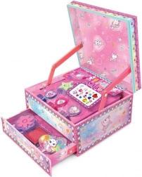 Objevte zábavu s razítky v roztomilém motivu kočičky baleríny. Stylová krabička-schránka se po otevření víčka sama vysune, takže je vše přehledně po ruce a zase snadno uklizené. Skvělé pro tvoření doma i na cestách.