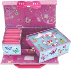 Součástí je startovací sada šperků – náramek a pět přívěsků typu charms, které lze libovolně kombinovat a vytvářet tak originální styl. Motiv motýlků dodává šperkovnici jemný, hravý vzhled.