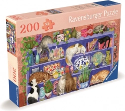 Složte si úžasný obraz s motivem koček v regálu. Díky kvalitním dílkům od značky Ravensburger si užijete příjemné skládání, které rozvíjí jemnou motoriku a nabízí hodiny zábavy.