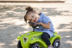 - Jemnou a hrubou motoriku: Jízda na Bobby Car posiluje nohy a ruce dítěte.