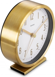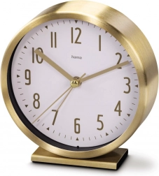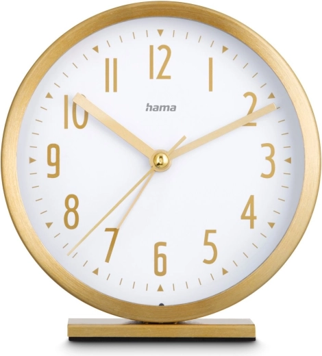 Probuďte se vždy včas a se stylem. Tento elegantní zlatý budík s analogovým ciferníkem a velkými zlatými arabskými číslicemi nabízí tichý chod s plynulou sekundovou ručkou, jednoduché nastavení jednoho budíku a kompaktní rozměry 11,3 cm, které se hodí na každý noční stolek.