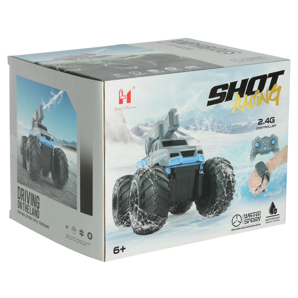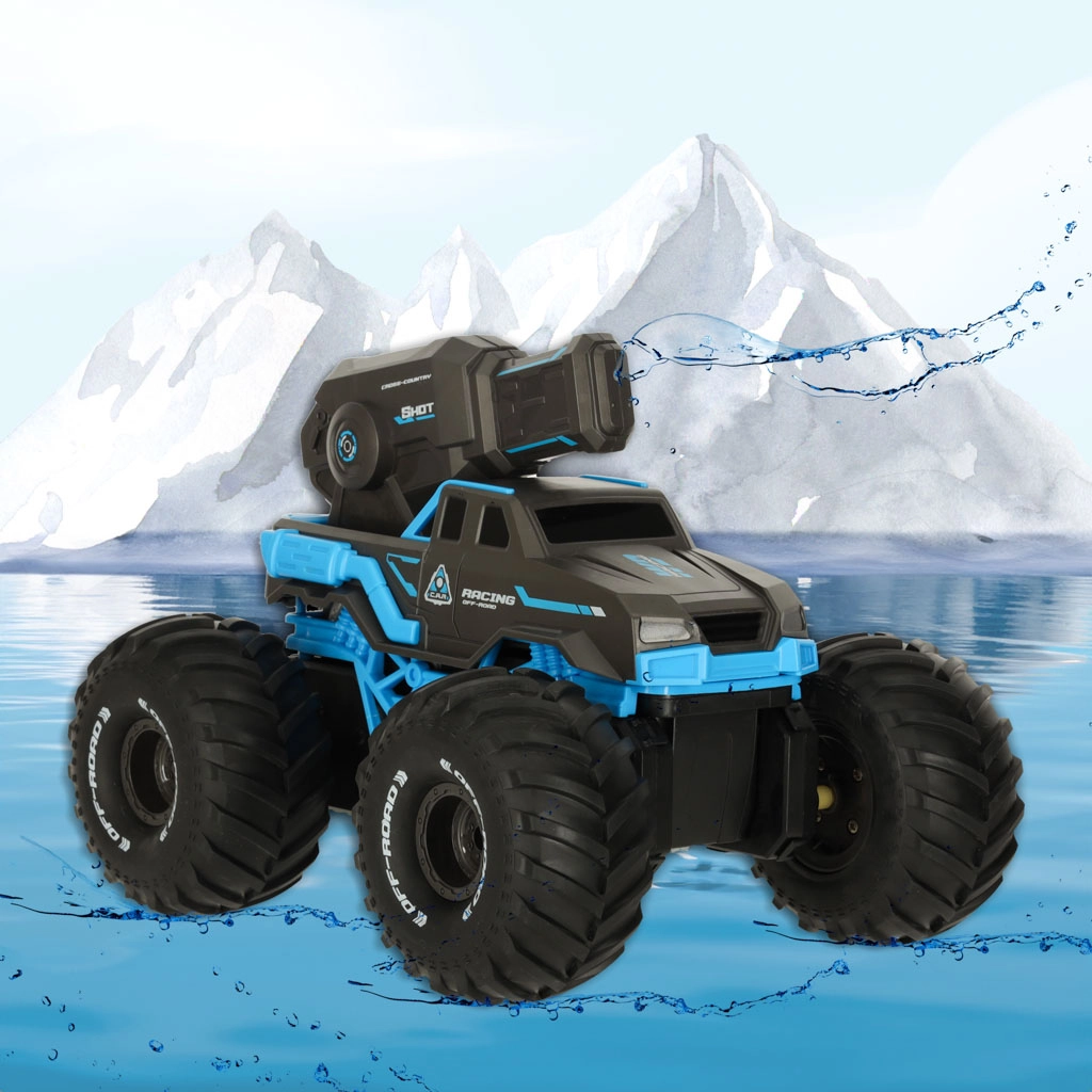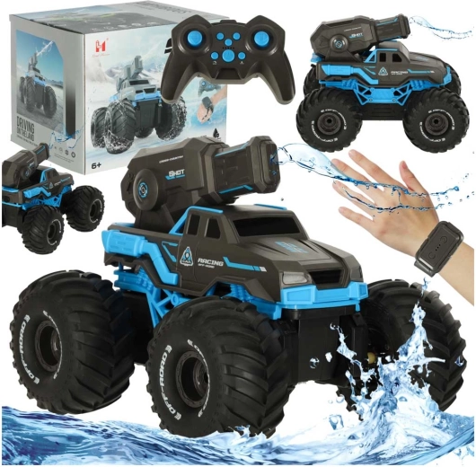 Objevte dobrodružství na souši i ve vodě s tímto amfibijním RC autem. Díky vodotěsné konstrukci si poradí s trávou, kalužemi i mokrým terénem. Ovládat ho můžete klasickým ovladačem nebo pohodlně pomocí gesta ruky díky chytrému náramku. Navíc je vybaveno vodním dělem se dvěma způsoby plnění, takže zábava nikdy nekončí. Odolné pneumatiky, silný záběr a snadné ovládání z něj dělají ideální hračku pro malé i velké nadšence.
