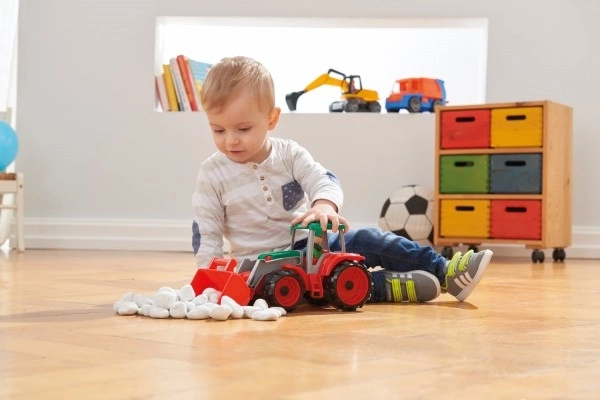 Robustní dětský traktor s přední lžící pro malé stavitele. Vyroben z kvalitního plastu, je plně mechanicky funkční, má odolnou konstrukci a otevírací kabinu s aktivním panáčkem pro ještě zábavnější hraní doma i venku.