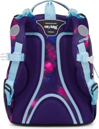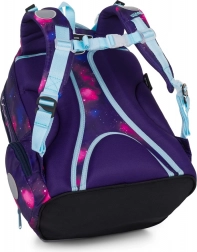 Školní batoh OXY GO Unicorn v atraktivním „galaxy“ designu spojuje ergonomii, bezpečnost a praktické členění. Anatomicky tvarovaná, prodyšná záda a nastavitelné popruhy zajišťují komfortní nošení po celý den. Pevné, nepromokavé dno chrání obsah před vlhkostí i ušpiněním.