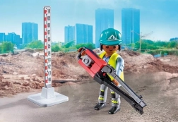 Součástí jsou 2 stavbaři s přilbami, vysílačka, koště, lopata, měřicí stativ a další nástroje pro neomezené scénáře a rozvoj kreativity.