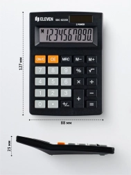 Spolehlivá kancelářská kalkulačka ELEVEN SDC-022SR kombinuje velký, snadno čitelný displej s intuitivním ovládáním. Díky solárnímu panelu a záložní baterii se hodí pro každodenní použití, ať už při účtování, studiu nebo rychlých kontrolních výpočtech.