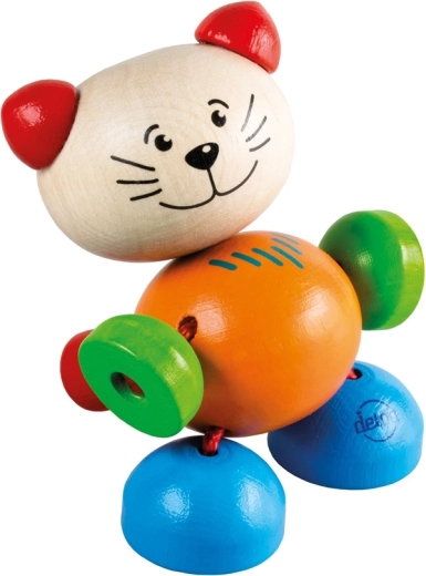 Roztomilá dřevěná hračka DETOA ve tvaru kočičky potěší už od 8 měsíců. Díky navlečeným tvarům na gumičce se dílky pohybují, točí a ohýbají, což skvěle podporuje jemnou motoriku a smyslové vnímání. Vyrobeno z kvalitního dřeva v ČR, zdravotně nezávadné a splňuje normy EU pro bezpečnost hraček.