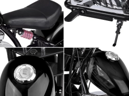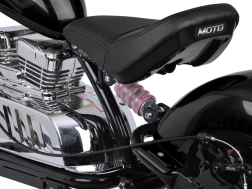Stylový dětský chopper inspirovaný klasickými motocykly nabízí silný 24V motor, baterii 24V 14Ah, rychlost až 20 km/h a ocelovou konstrukci pro stabilní a bezpečnou jízdu. Komfort zvyšují nafukovací kola, zadní odpružení, sedlo z eko kůže a manuální regulace rychlosti v plynové rukojeti. Nechybí zadní kotoučová brzda, LED osvětlení, zvukové efekty a USB vstup pro oblíbenou hudbu.