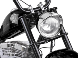 Elektrický chopper pro děti spojuje autentický vzhled s moderní výbavou pro bezpečnou a zábavnou jízdu. Plynulý rozjezd přes plynovou rukojeť s regulací pomáhá přizpůsobit tempo dovednostem dítěte, zatímco zadní kotoučová brzda zajistí jisté zastavení. LED světla a realistické zvuky motoru podtrhují zážitek z jízdy.
