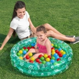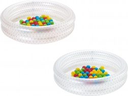 Součástí balení je 50 barevných míčků, takže bazének snadno proměníte v suché hřiště pro zábavu po celý rok. Bezpečnostní ventily pomáhají udržet vzduch uvnitř a dvojitý prstenec poskytuje stabilní oporu při sezení i hraní.