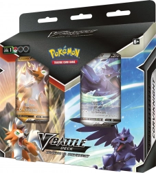 Připravte se na velkou bitvu Pokémonů s již připravenou herní sadou! Pokémon TCG: V Battle Deck Bundle Lycanroc vs. Corviknight nabízí balíček karet pro vás a vašeho přítele. Vyberte si mezi ohnivým Lycanroc V nebo psychickým Corviknight V.