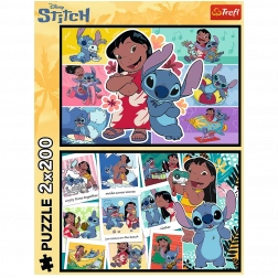 Přinášíme vám dvojí radost s touto sadou puzzlí se dvěma skládačkami po 200 dílcích. Tématem jsou barevné koláže z oblíbené pohádky Lilo a Stitch, které poskytnou zábavu pro celou rodinu.