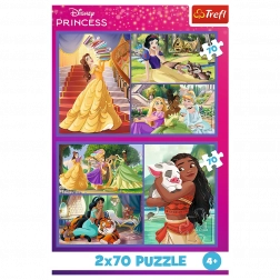 Puzzle 2x70 Disney Princezny Bajkové Dny jsou perfektní volbou pro všechny děti, které milují Disney princezny. Obsahuje dvě skládačky, které dohromady nabízí dvojnásobnou zábavu.