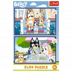 Veselá Bluey jsou puzzle znázorňující postavičky z pohádky Bluey. Každá skládačka složí obraz o rozměrech 275x180 mm.