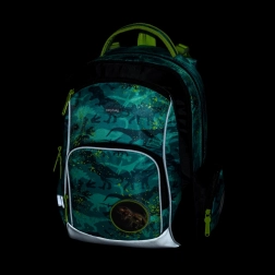 Dětský školní set OXYBAG OXY GO Dino potěší malé milovníky dinosaurů a rodiče přesvědčí svou ergonomií a bezpečností. Obsahuje lehkou školní aktovku s prodyšnými zády, nastavitelnými popruhy a reflexními prvky, dále pytlík na cvičky a jednopatrový penál. Ideální volba pro 1.–3. třídu.