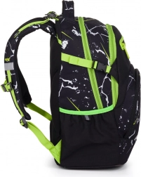 Lehký a odolný školní batoh Oxy Ombre Electric pro děti od 3. třídy kombinuje anatomicky tvarovaná záda, polstrované popruhy a hrudní pás pro pohodlné nošení. Nabízí dva prostorné oddíly, boční kapsy na láhev, praktickou přední kapsičku na svačinu a bezpečnostní reflexní prvky. Pevné dno zajišťuje stabilitu při odkládání.