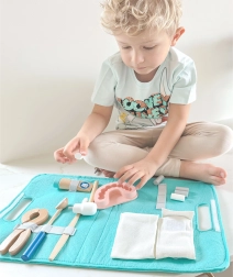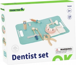 Dřevěná sada pro malého zubaře od značky Tooky Toy obsahuje vše potřebné pro hru na zubaře. Budoucí lékaři mohou pichat injekce, trhat a kontrolovat zuby svým pacientům. Hra na zubaře není jen rolová hra, ale také výuka dentální hygieny a důsledků jejího zanedbání. Učí empatii a spoluprožívání, což je pro sociální vztahy velmi důležité. Podporuje rozvoj fantazie a učí řešení problémů.