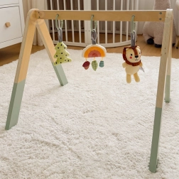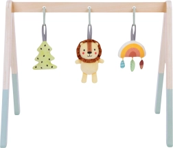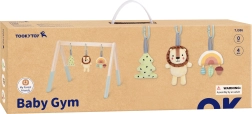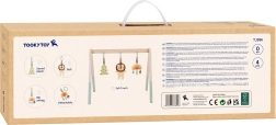 Baby gym TOOKY TOY je navržen tak, aby šetrně rozvíjel smysly novorozenců a kojenců. Tři závěsné hračky motivují miminko k natahování a uchopování, čímž přirozeně posilují koordinaci a zručnost. Jemné zvuky chrastítka, šustění a pískání podporují vnímání a soustředění.
