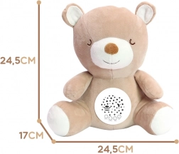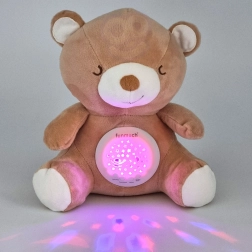Medvídek je vyroben z jemného, měkkého materiálu a je vyplněn vatou pro maximální hebkost. Díky vyjímatelnému mechanismu lze plyšáka snadno vyprat a dítě si ho může užívat i jako klasickou mazlivou hračku. 3 úrovně hlasitosti umožní přizpůsobit zvuk přesně potřebám vašeho miminka.