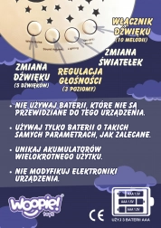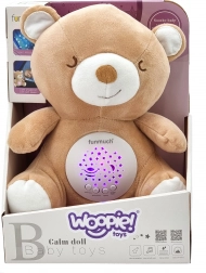 Roztomilý plyšový medvídek WOOPIE BABY je ideální společník na usínání pro miminka i starší děti. Nabízí světelné efekty v bříšku, 10 ukolébavek, uklidňující šumy a tlukot srdce a 3 úrovně hlasitosti. Měkoučké provedení, snadná údržba díky vyjímatelnému mechanismu a dětsky bezpečné zpracování dělají z medvídka nepostradatelnou pomůcku pro klidný spánek.